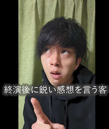「動画があったから話は分かったけど芝居はつまらんかった」って言われた方がまだマシです。僕らの力が足りなかっただけですから。こういう顔で説教された方がまだ嬉しいのです。