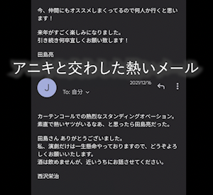 その人はそれ以来もう二度と観に来てくれません。演劇とはそれくらいリスクの高い、難しい実験なのだと思っています。人間関係すら壊してしまうリスクを背負って宣伝すべきビジネスだと思っています。生半可な気持ちでやっちゃいけないものだと思っています。(僕がこの2年演劇をやっていなかったのもこの辺に自分なりの理由があるのです、、、)