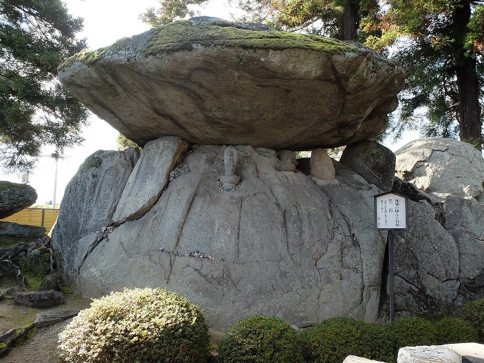 お姫さまの病気を治したい一心で、「妊婦の生き胆を飲ませれば治る」という易者の言葉を信じた乳母が、自分の娘と知らずに妊婦の腹を裂いて生き胆を取り、娘と気づいて気が狂い鬼婆と化してしまったという。その鬼婆を埋めたのが、「黒塚」です。