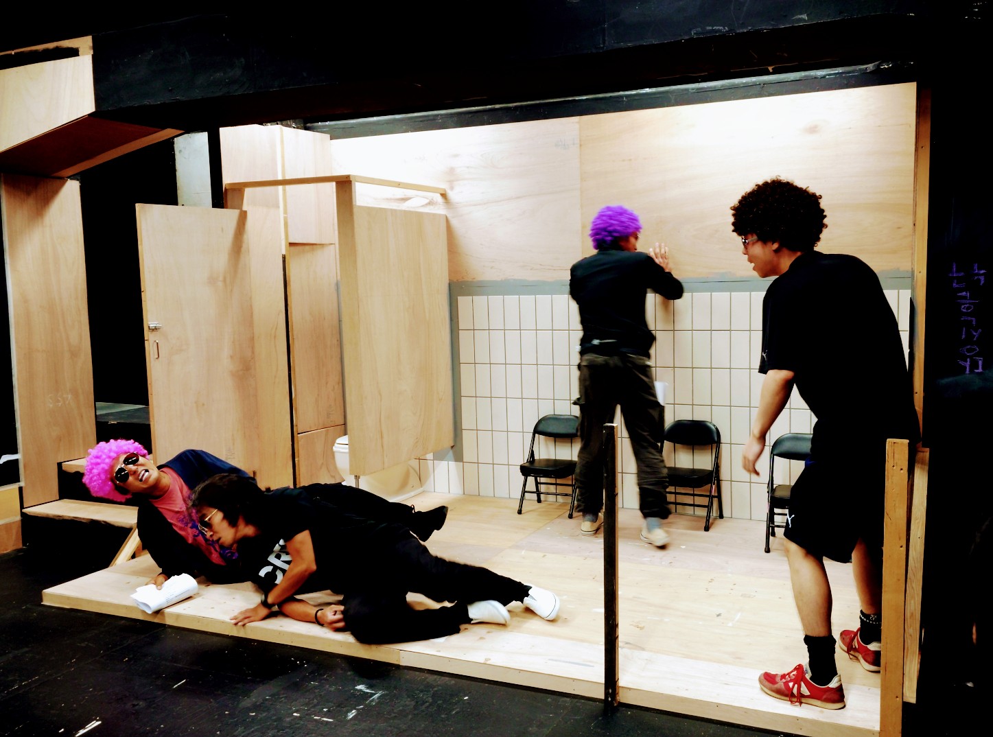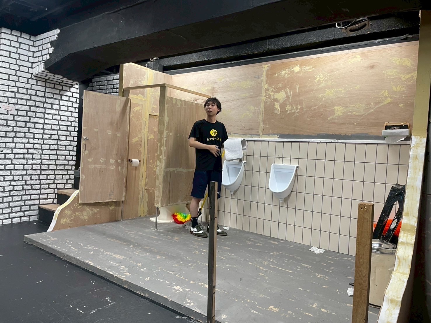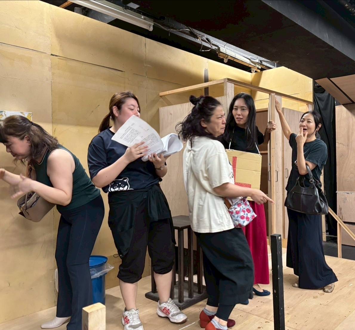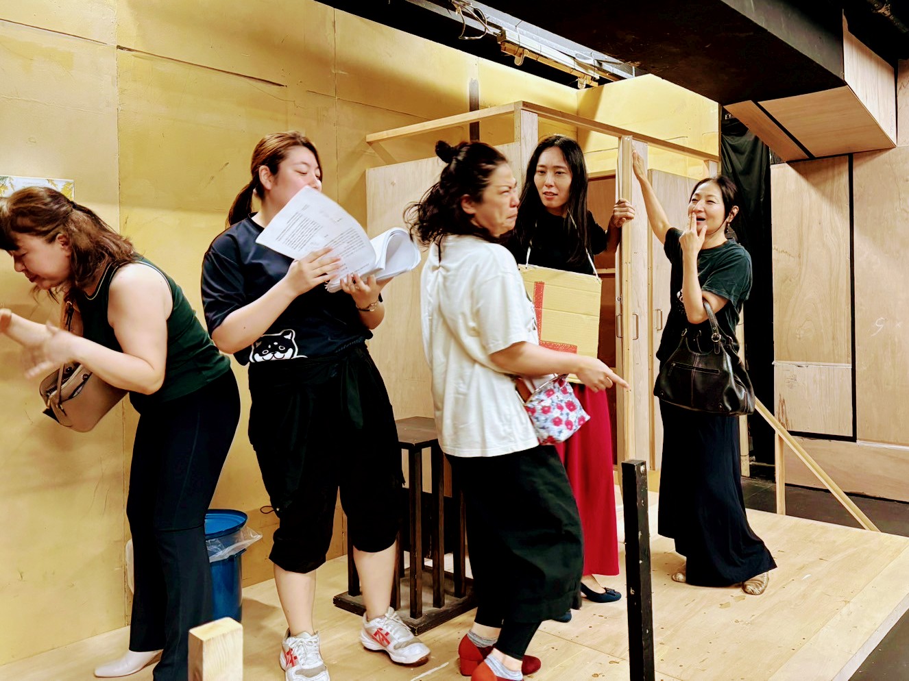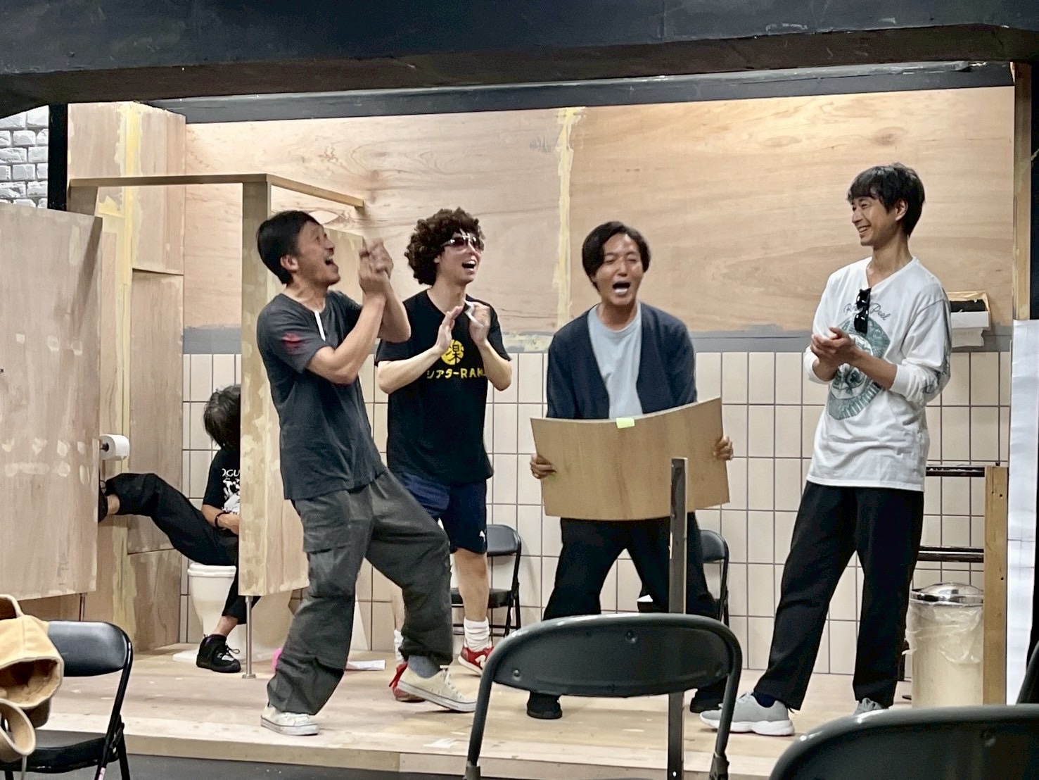 結婚式前夜、新郎新婦はそれぞれ、友人たちと連れ立って街に繰り出し羽目を外して独身最後の夜を大騒ぎして過ごすのだ。(稽古場日誌8.19.より)