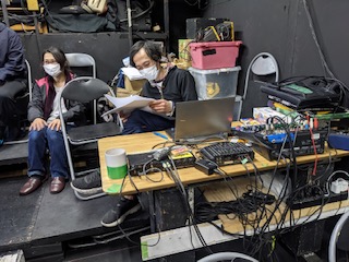 音楽・演奏の鈴木光介さんは、ご持参のコーヒーセットとともに。稽古では早速光介さんの作ってくださった音楽が流れています。無限の可能性を感じる、素敵な音たち。