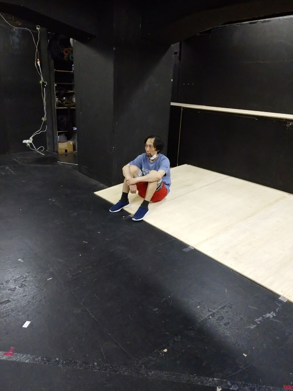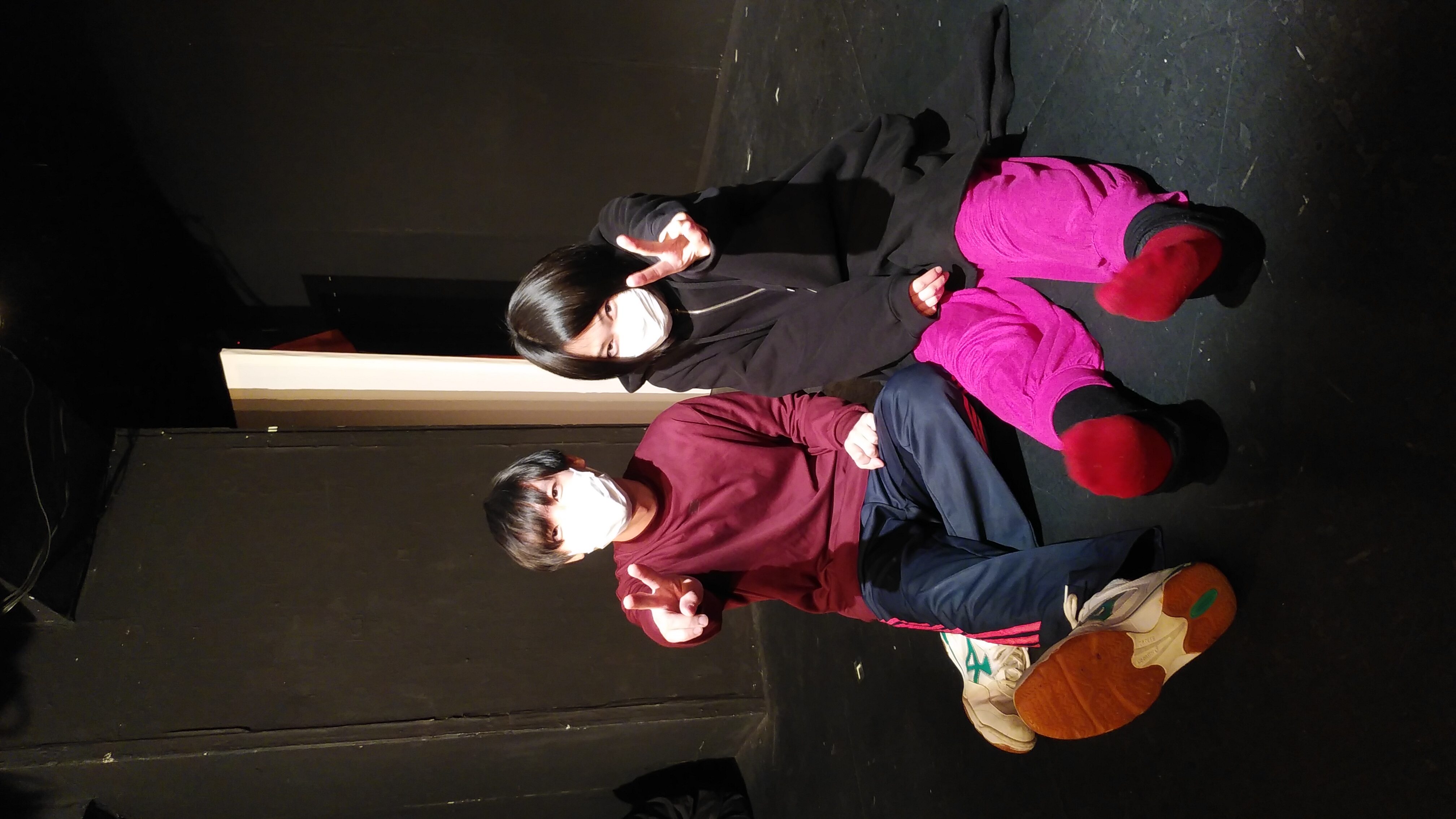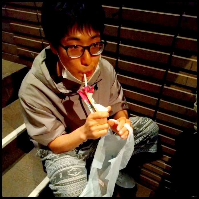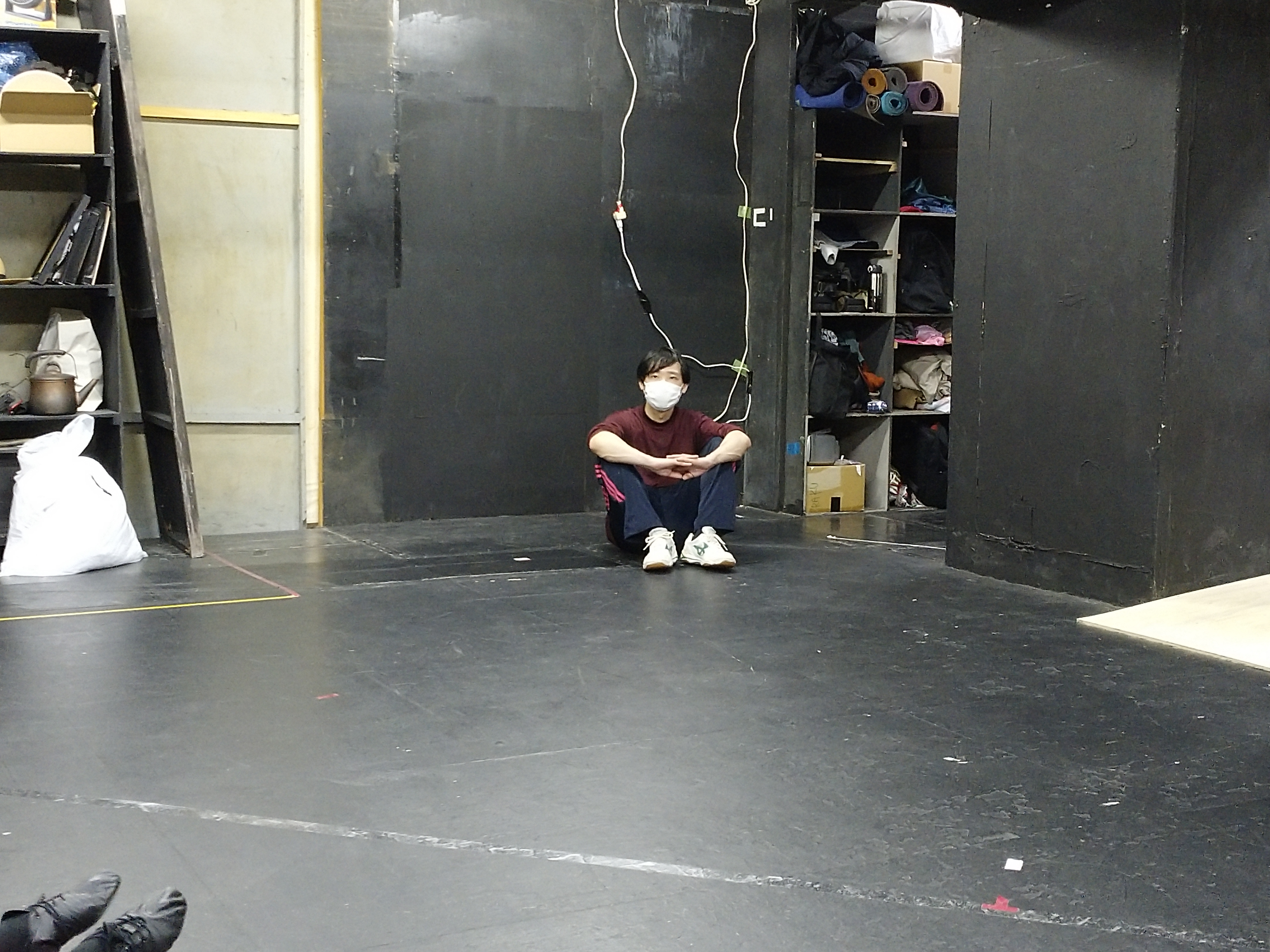もう食べ終わっちゃってた松永くん。稽古場外の階段が彼の定位置です。ちゃんと栄養とってね。