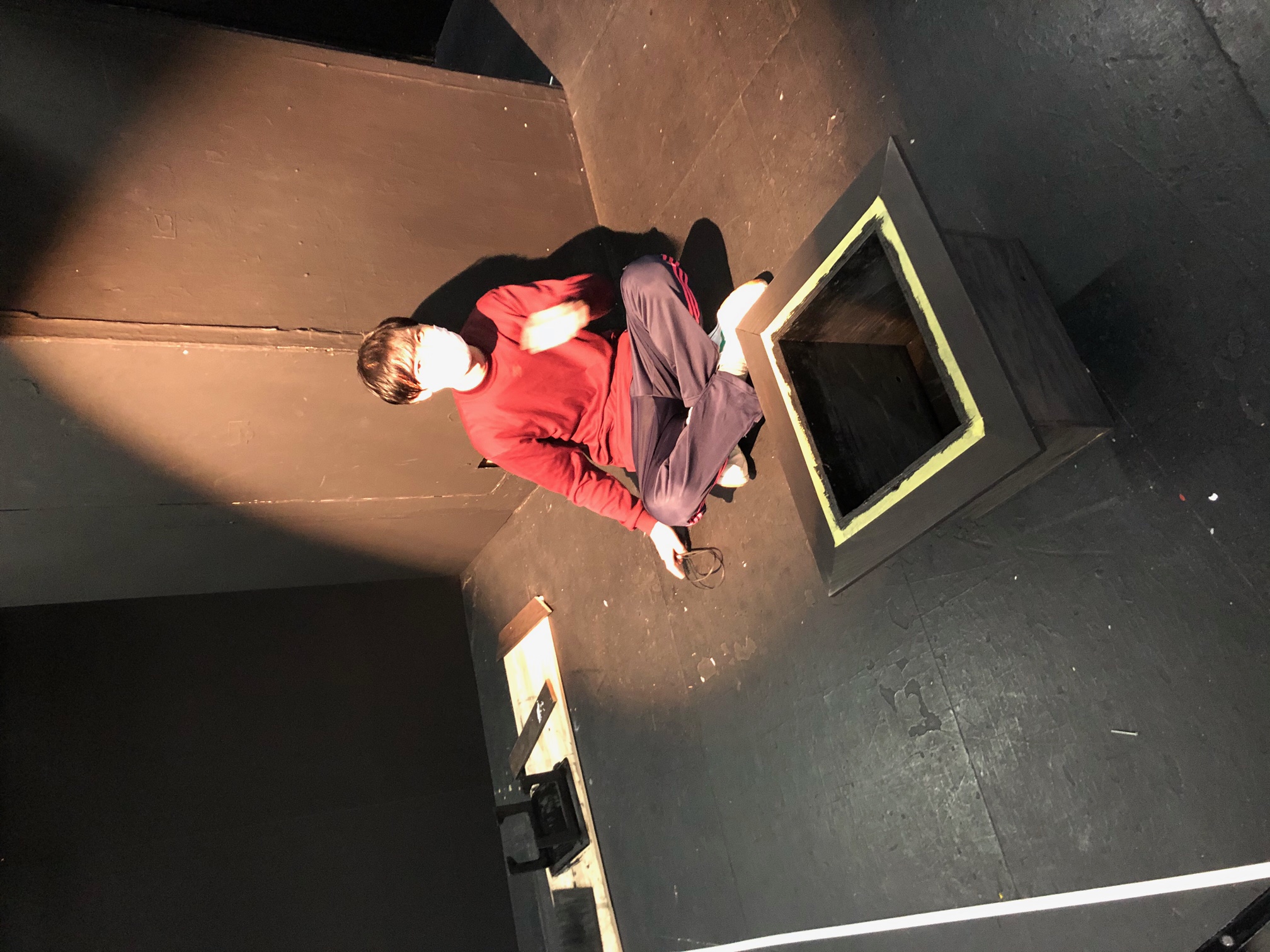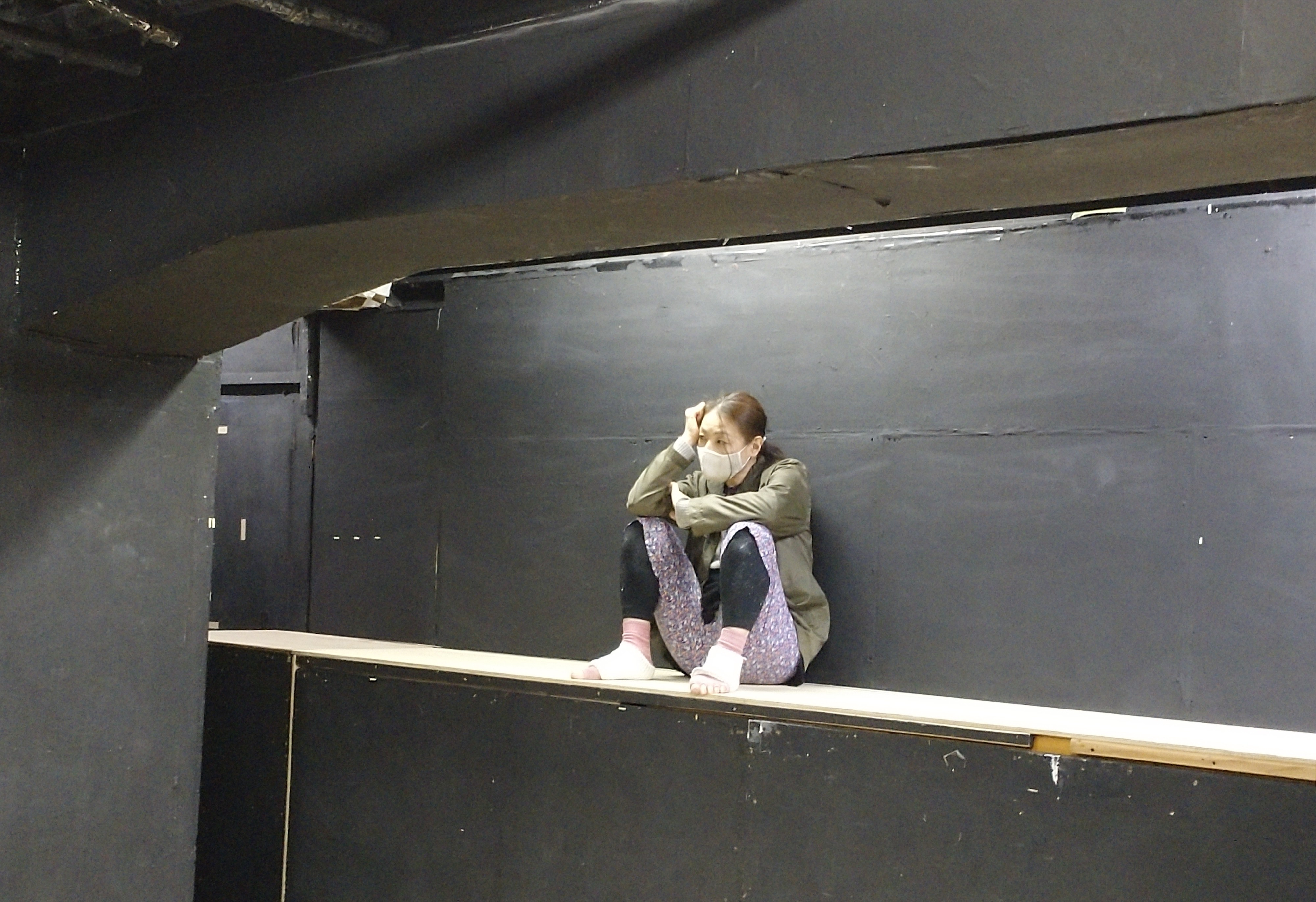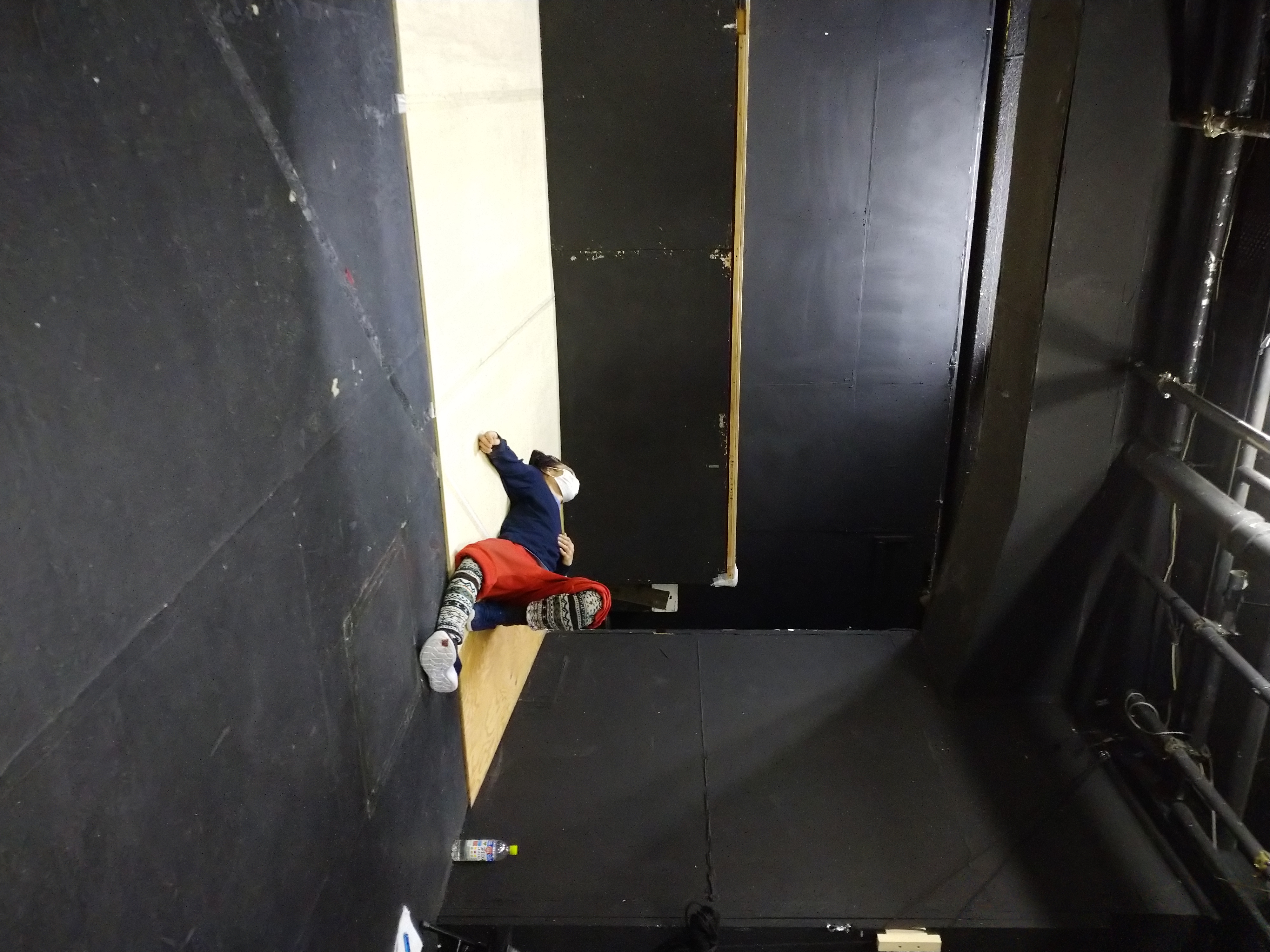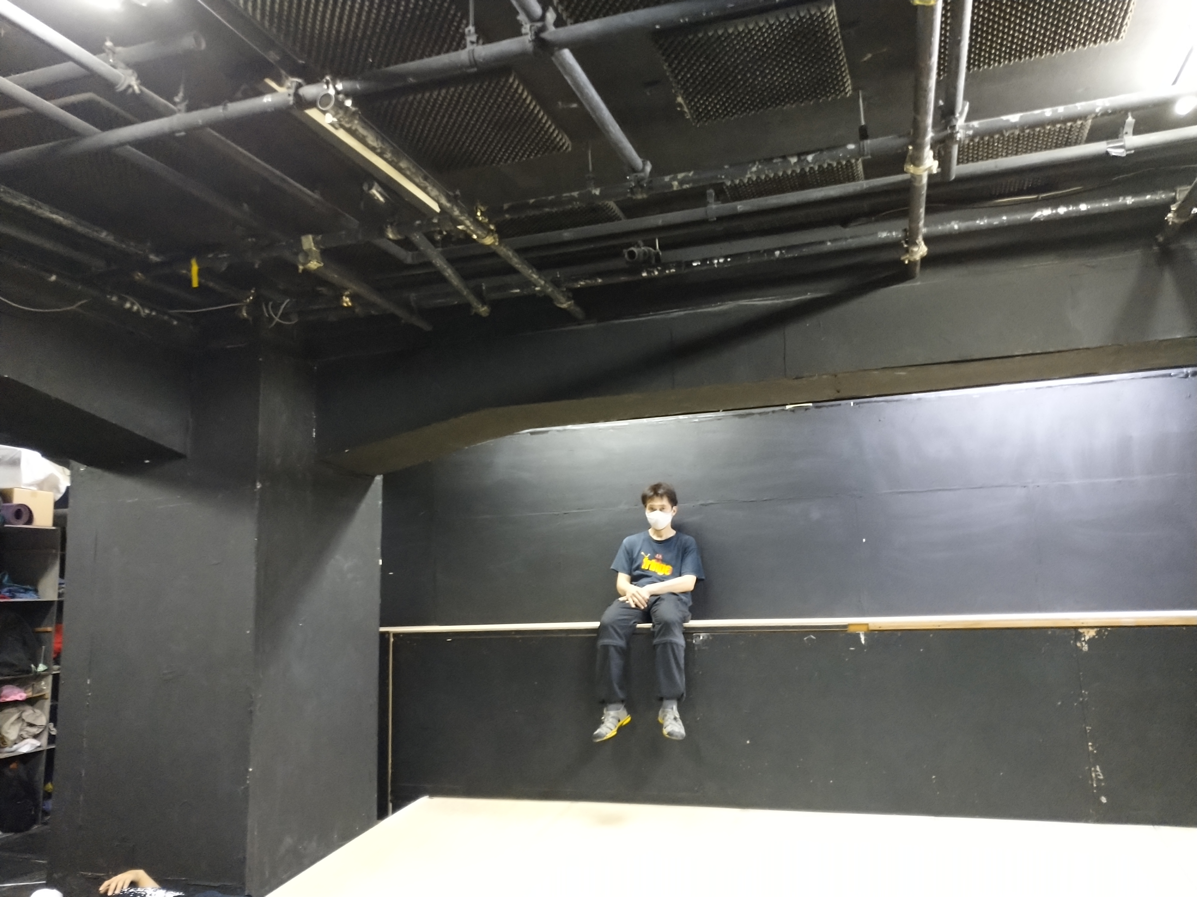 もう食べ終わっちゃってた松永くん。稽古場外の階段が彼の定位置です。ちゃんと栄養とってね。