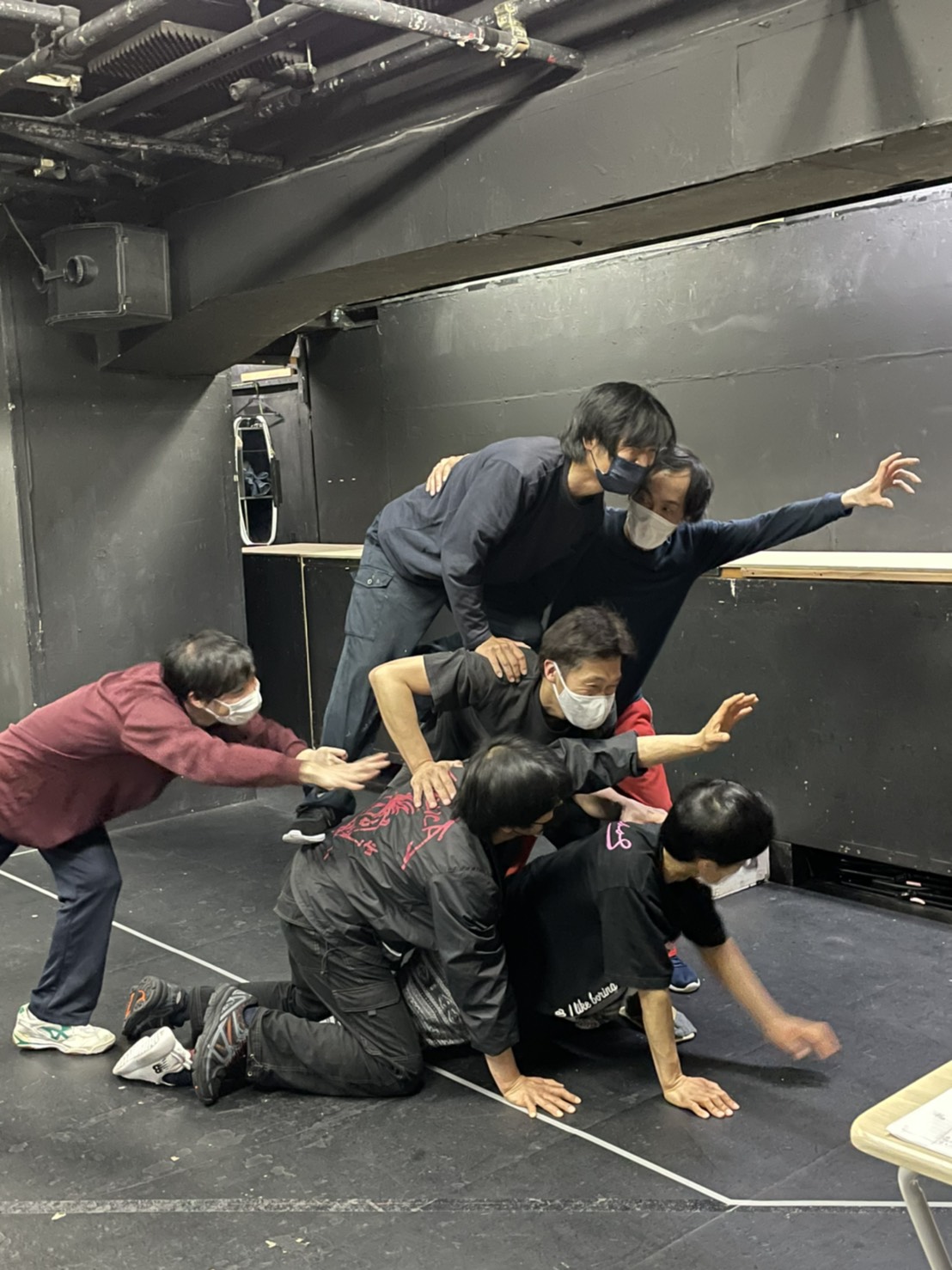 何かあったかな~と言ってカバンから一本満足バーを探し出してくれたのは、振り付け助手の木内尚さん。なななんと元劇団員!稽古前の尚さんによるストレッチタイム、大変感謝しております。