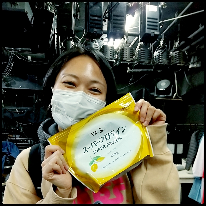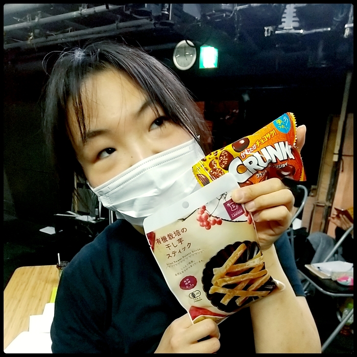 優希さん「女は黙って明治ブラック」(言ってない)。おやつよりも、稽古場で抱えている2リットルの水の方が印象的です。