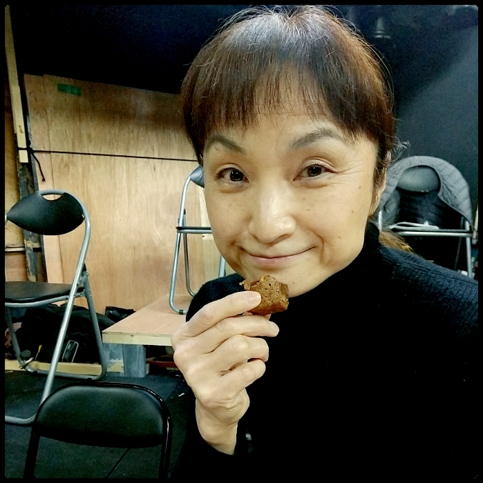 演出・振り付けの真実先生は、美味しそうなブラウニーを食べてる最中でした。笑顔が可愛すぎる。そしてこの笑顔で、鬼のようにアクロバティックな動きを要求してきたりもする。