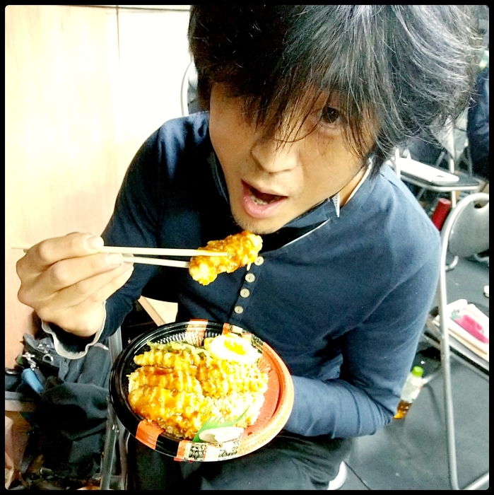 飯より先にメールチェック(たぶん)のデキる男、山Pさん。稽古始まってからいつも常に必ず100%毎日マスクが曲がっているのだけど、未だに本人に言えない。
