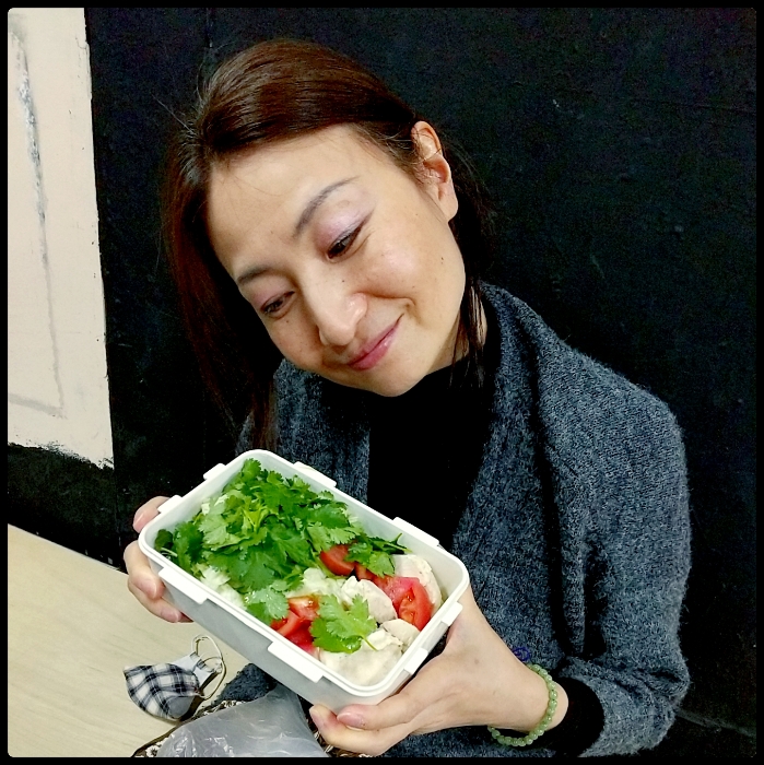 弘子さんは、パクチーとトマトと鶏肉がたっぷりの自家製ヘルシーサラダを20時に食べて、それ以降は何も食べない!何も食べない!と呪文のように唱えていました。