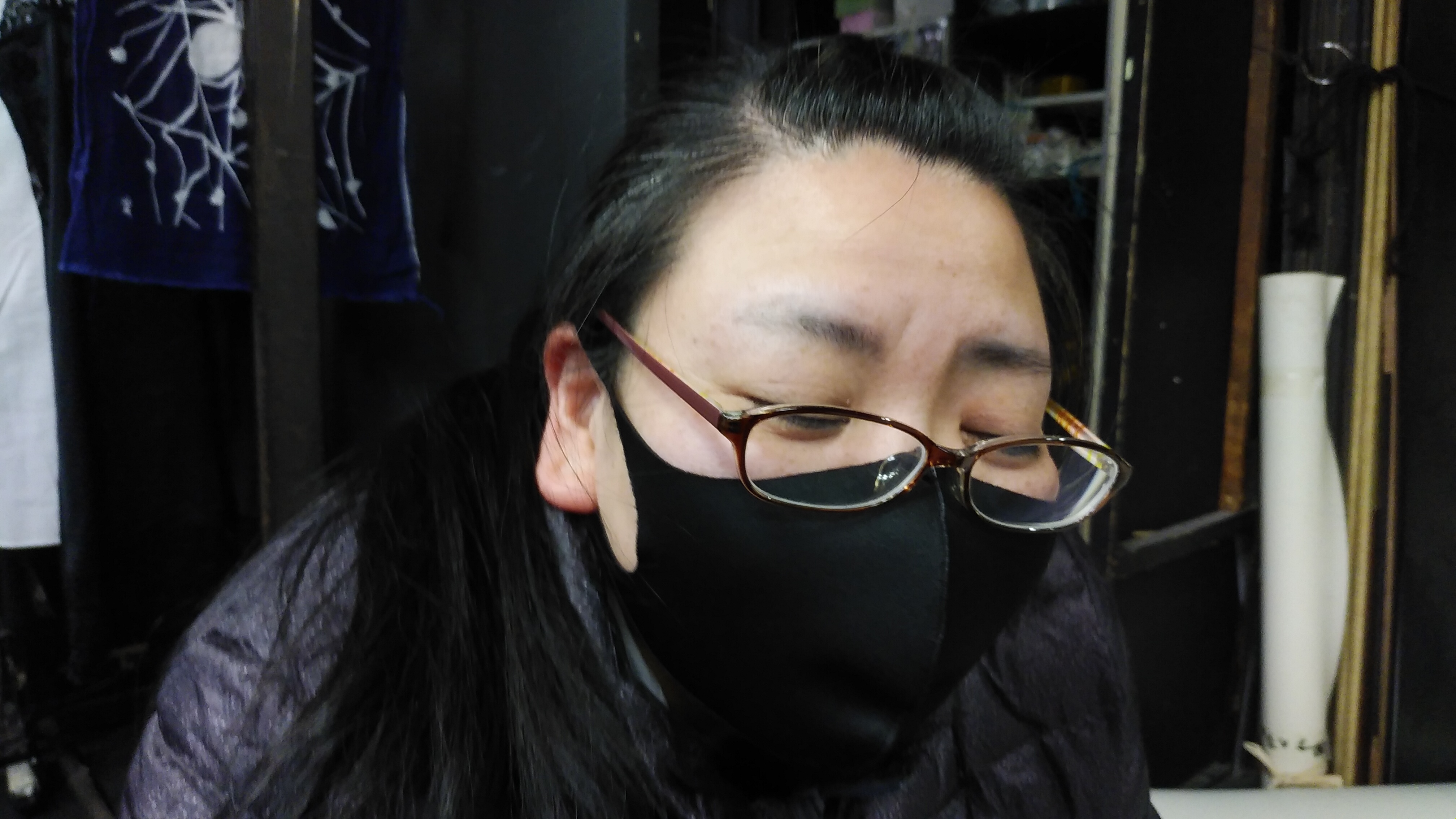 えも言われぬ表情の里美さん。写真を撮ろうと近づいたら、からあげクンを狙っていると勘違いされました。毎日からあげクン食べてる気がする。