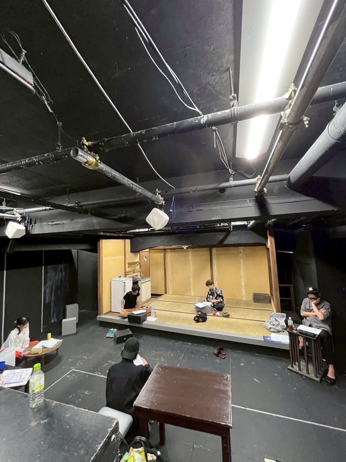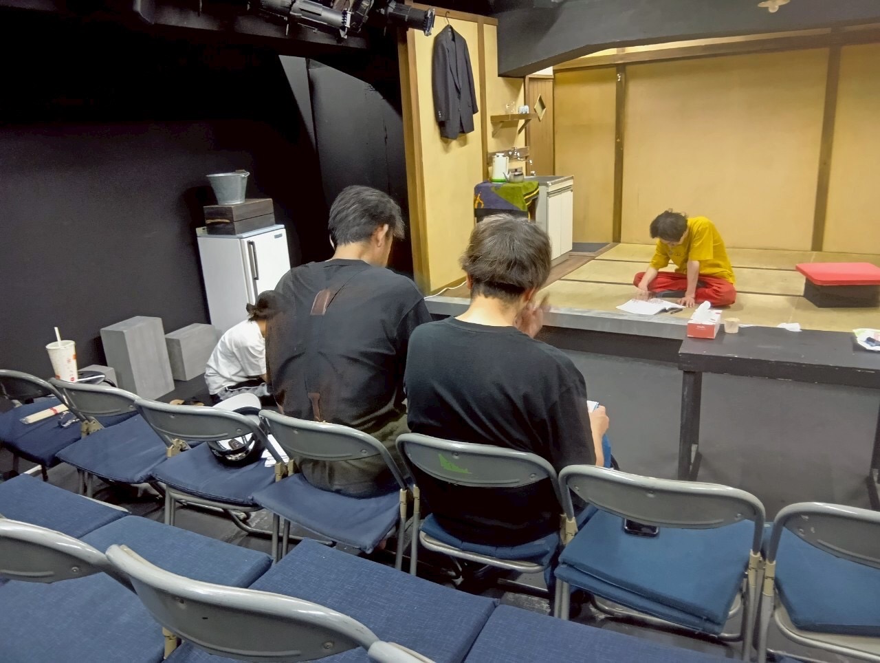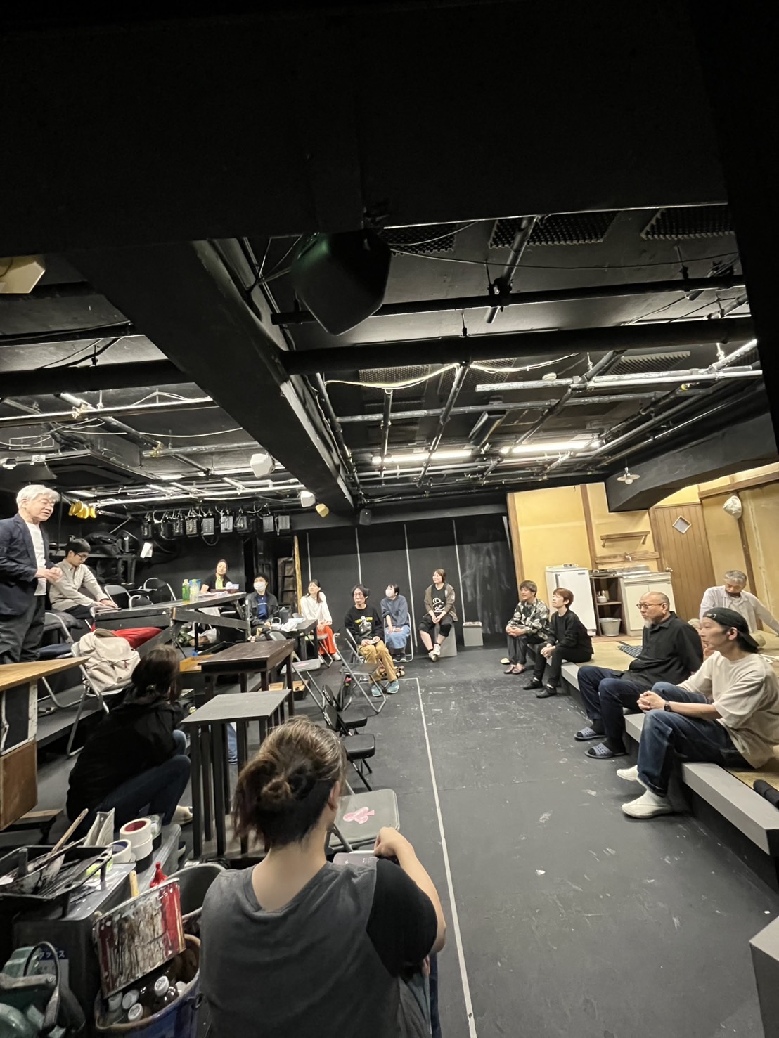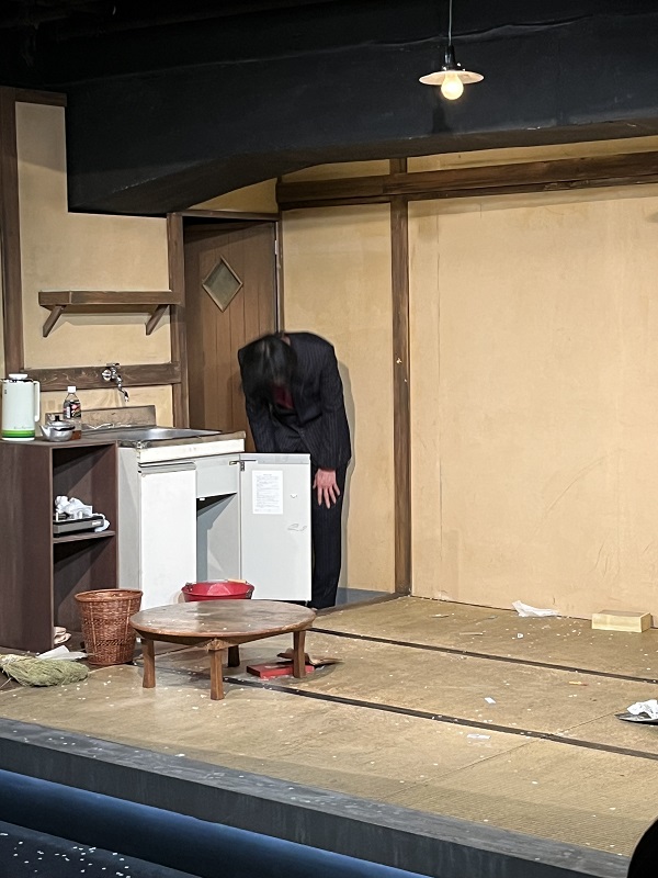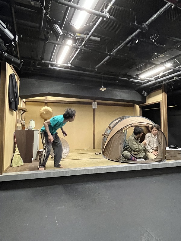 いや~前回、まだ初期の稽古を見せてもらった時には、実は、詩的な台詞に耳を持って行かれ(詩が大好き)、セットにも、ボス(流山児氏)の稽古姿にも目を見張っているうちに(怖いもの見たさ笑)、稽古が終わってしまっていたのですが、、、