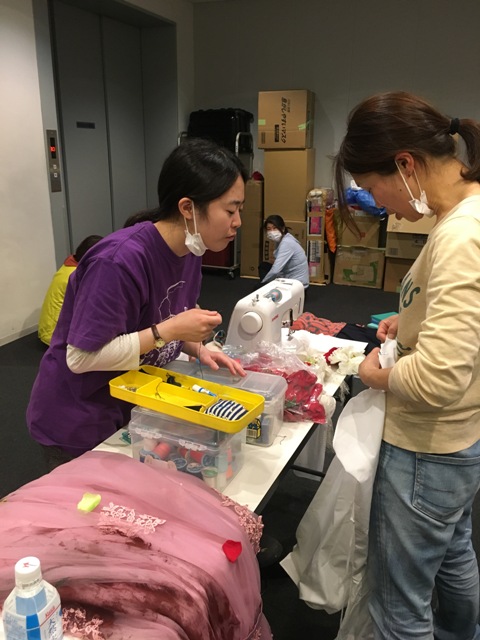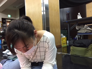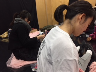 稽古後に、何か作業をしている彼女たち。