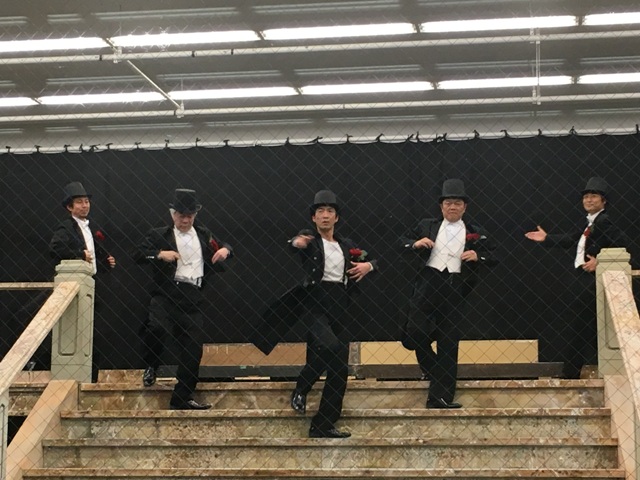 本番が始まると、準備ができた彼女たちは、モニターに映る男性チームのダンスにくぎづけになり、北村英一役の木暮さんの階段落ちを観てから動き出すのが日課になっています。