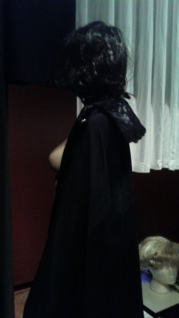 舞台裏ではスタイル抜群の女性がマントだけを羽織っている.。