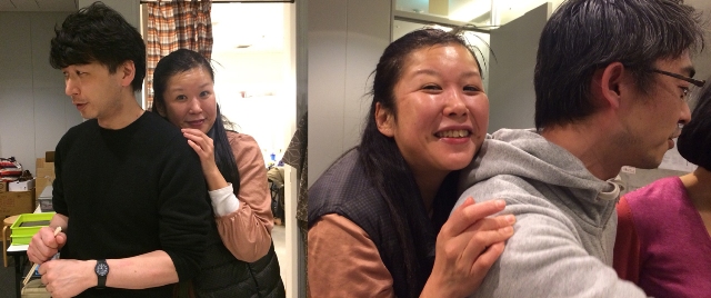 楽しく皆が飲んでいる中、背後霊のように演出の西沢さんと演出助手の小形さんに張り付く小町ちゃんを発見!ちょっとこわい???