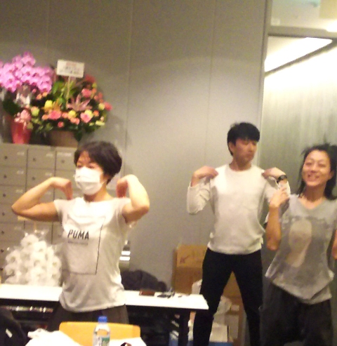 本番前のアップに紀保さん主導のもとラジオ体操の時間が…。日に日に人数が増えてきました。