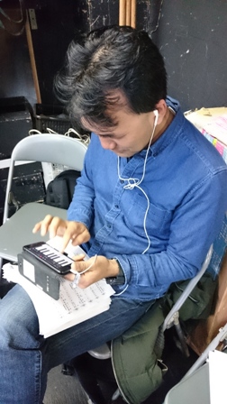 若手・竹本に鍵盤で音をとってもらいながら