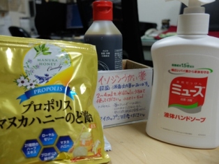 うがい薬は、水場の横の棚に置いてあります。