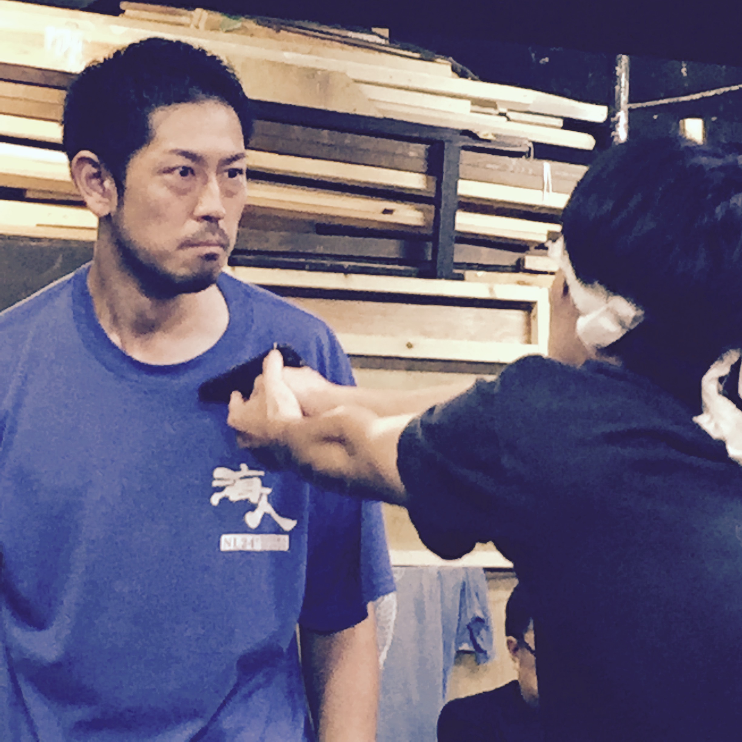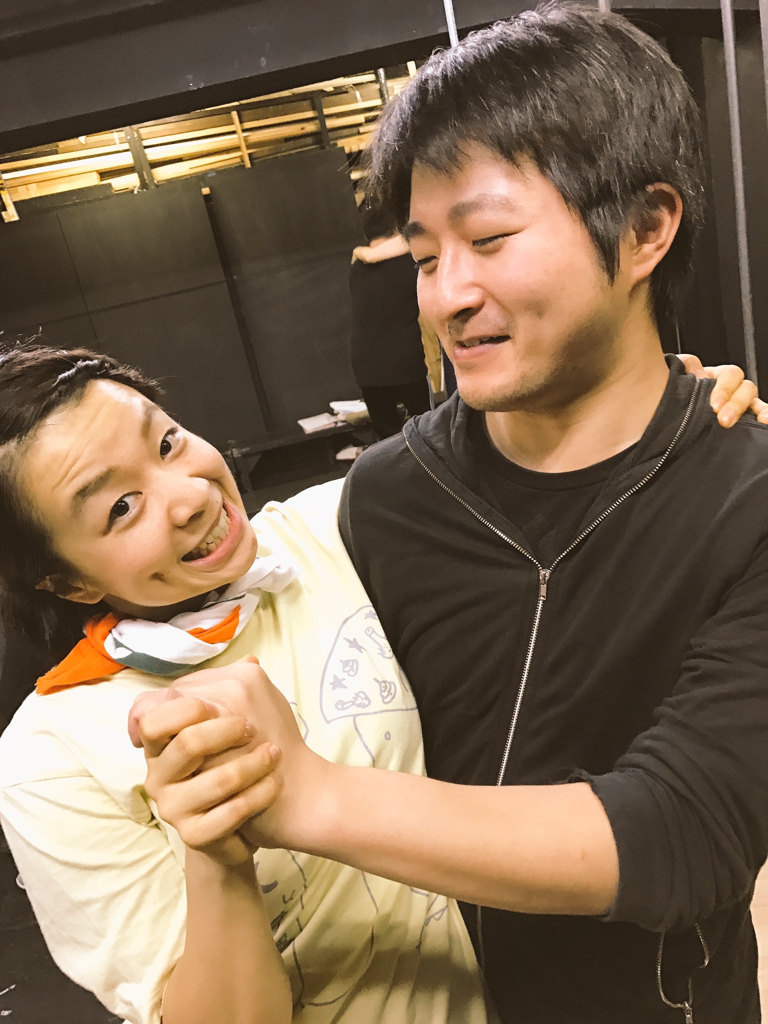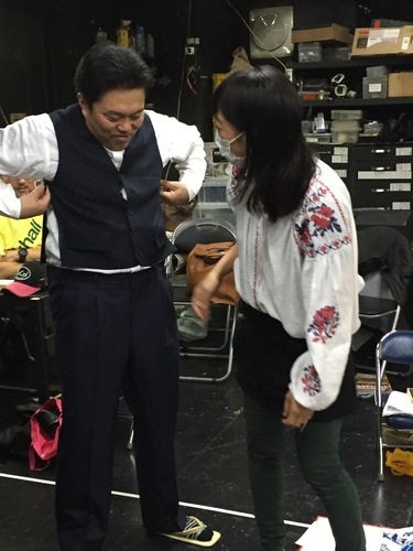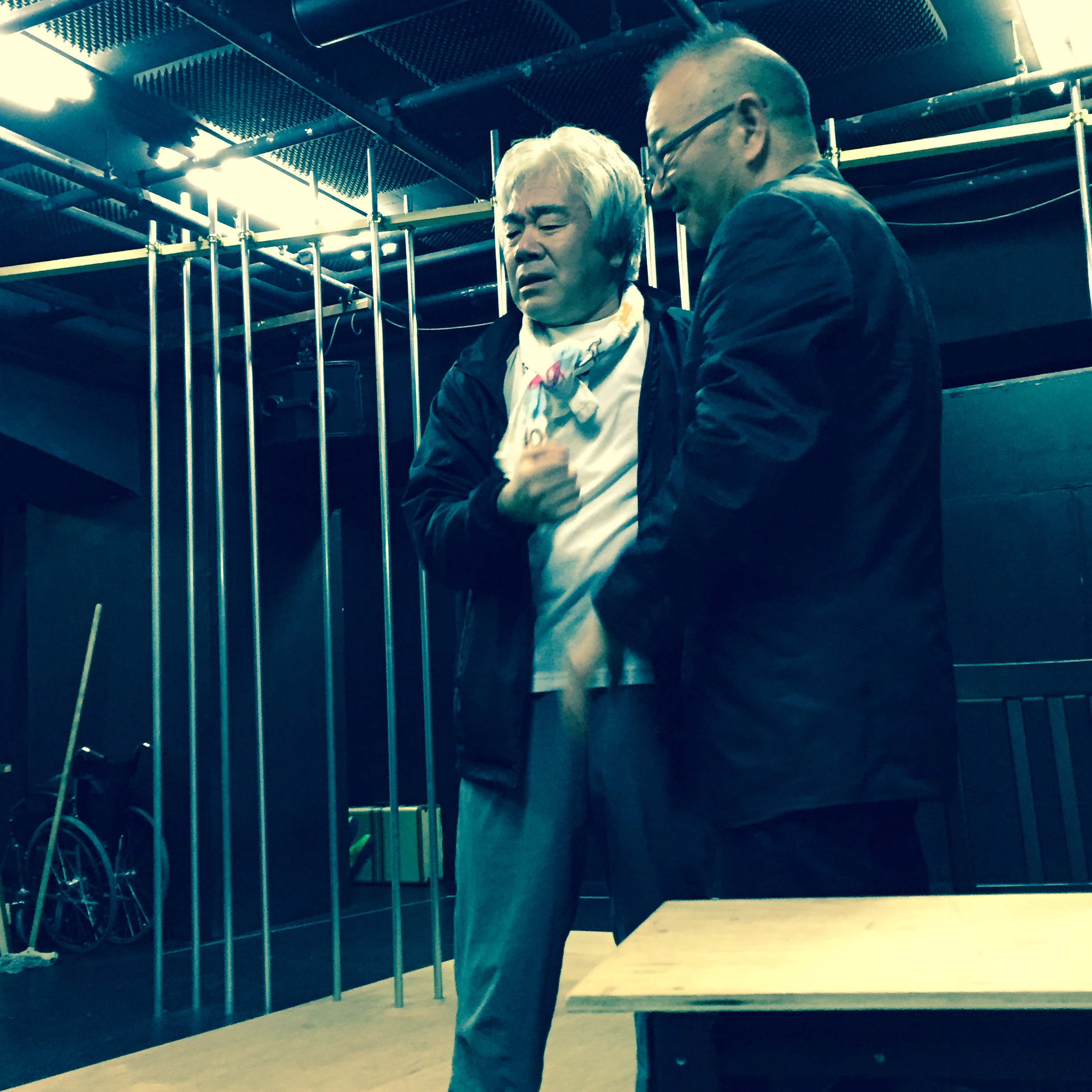 流山児さんが、西沢さんに何かを頼んでいるところです。
