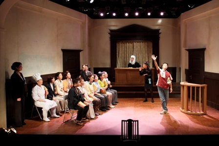 この公演では平均55歳のアマ女性劇団「楽塾」