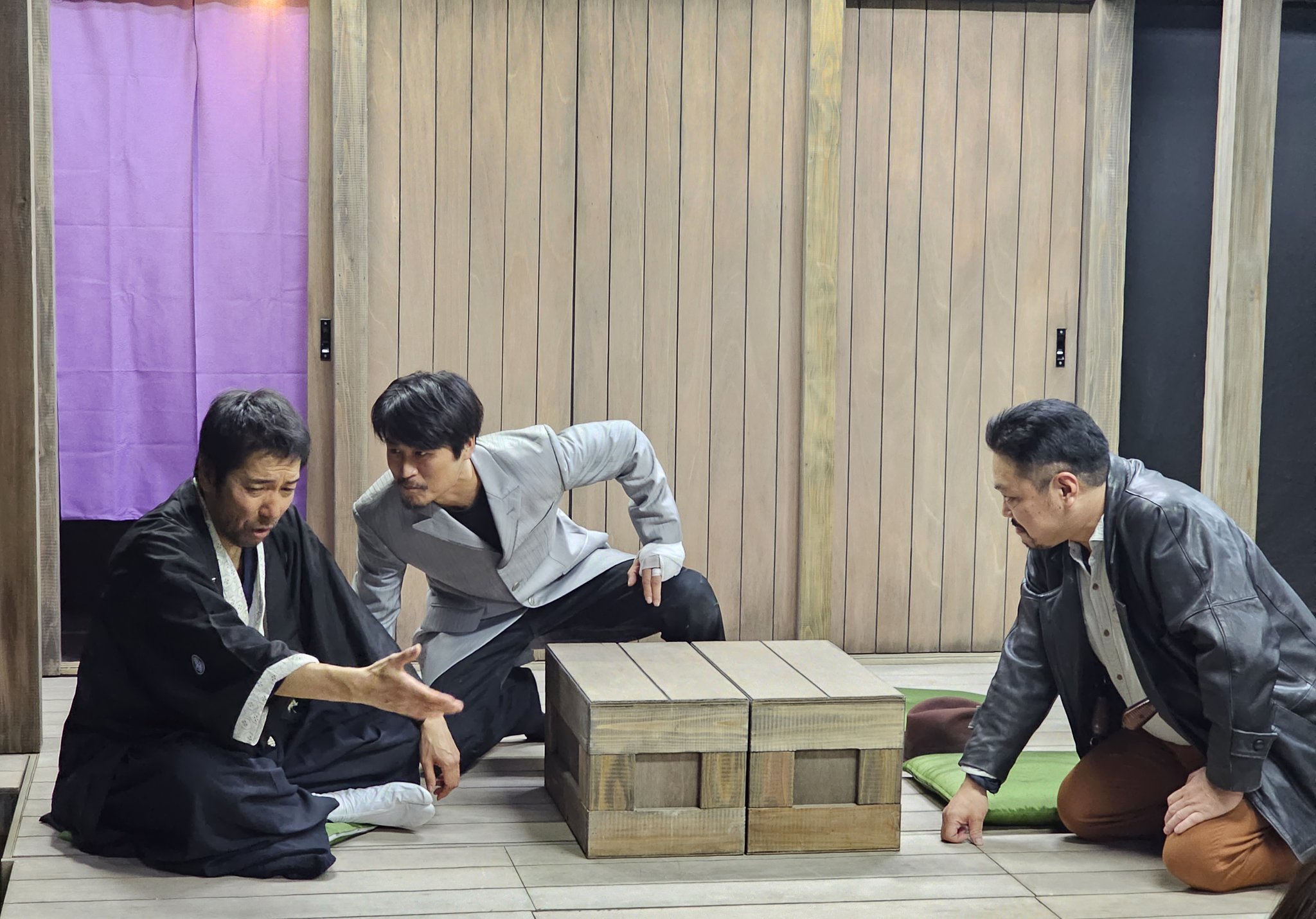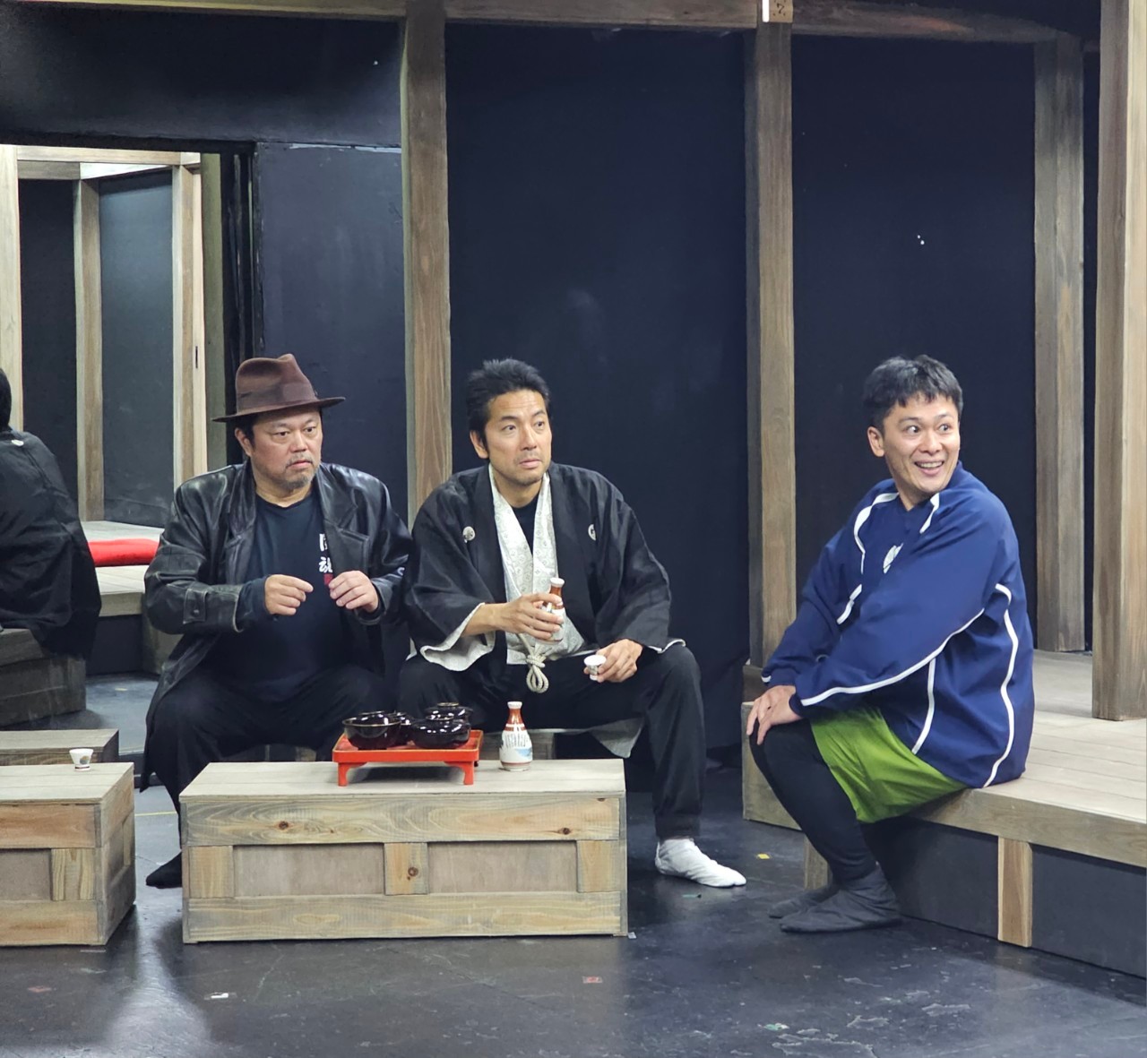 写真右が黄興(コウコウ)役の甲津拓平さん、真ん中が宋教仁(ソウキョウジン)役の木暮拓矢さん。